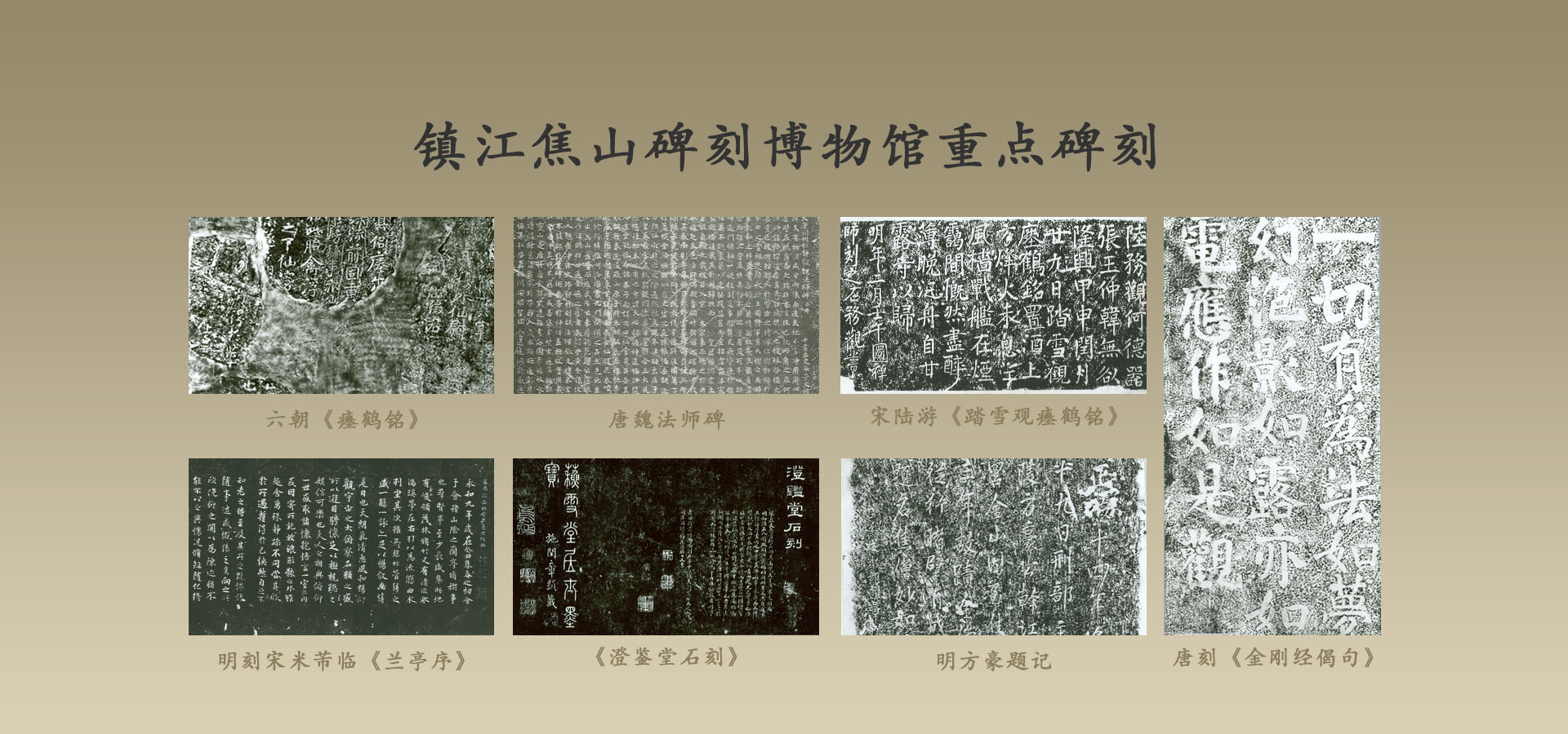 本次展览分三个部分介绍和展示焦山石刻:镇江焦山碑刻博物馆的镇馆之宝——六朝《瘗鹤铭》石刻以及相关的部分石刻; 精选题刻于焦山崖壁的石刻拓; 精选碑林馆藏碑刻拓本。本次展览,进一步加强两地碑刻文化…