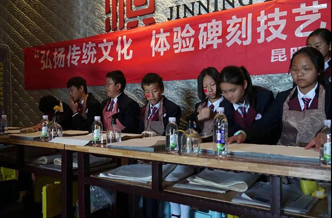 11月26日上午,由昆明市晋宁区博物馆、区图书馆和镇江焦山碑刻博物馆联合举办的《鹤鸣九皋——镇江焦山碑林馆藏名碑名帖拓片展》在晋宁博物馆开展。 开展仪式由晋宁区文化和旅游局党组书记、局长陶永芳主持。江苏省镇江市文化广电和旅游局党委委员、四级调研员梁汉林致辞,晋宁区政协副主席李永红致辞并宣布开展。区政协文化文史和学习委、晋宁区书法家协会等单位的领导、区文化旅游局部分干部职工、昆一中晋宁学校初中部100余名师生参加开展仪式。 开展仪式上,焦山碑刻博物馆潘美云代表镇江焦山碑刻博物馆向晋宁区博物馆赠送《陆游踏雪观瘗鹤铭》拓片。晋宁博物馆向镇江焦山碑刻博物馆回赠《马哈之墓碑》拓片。 开展仪式结束后,各位领导和嘉宾一同参观了此次展览,焦山碑刻博物馆讲解员进行了详细解说。