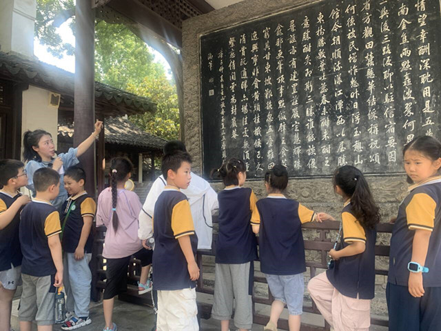 在碑林老师的带领下,同学们参观了江苏境内为数不多的初唐碑刻《魏法师碑》、汇集宋、元、明、清73位名家墨宝的清代《澄鉴堂石刻》、《乾隆御碑》……品读历代文人游历镇江山水留下的诗词题名,体验碑刻上的千秋石语带来的独特魅力。