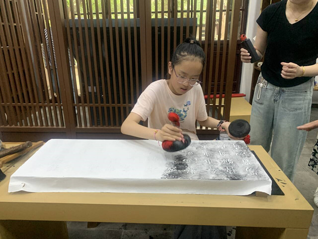 7月20日上午,镇江焦山碑刻博物馆开展了“墨香留韵”拓片制作体验活动,带领同学们领略镇江特色的碑刻文化,体验最传统的碑拓技艺。