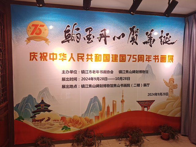 9月28日上午,由镇江焦山碑刻博物馆、镇江市老年书画协会主办的“‘翰墨丹心贺华诞’庆祝中华人民共和国成立75周年书画展”在焦山书画院正式开幕。