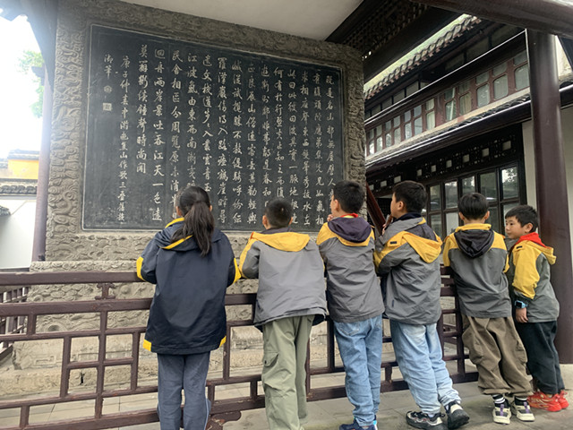 ’通过半日的寻访,小同学们依次解锁打卡了《乾隆御碑》、《瘗鹤铭》等碑林代表性文化景点和焦山抗英古炮台。一步足迹一支故事,一件文物一段历史,从乾隆诗词中体验感受家乡山河之美,在瘗鹤铭的书法艺术中感受来自乡土的文化脐带,再到壮丽河山面临英国侵略者进犯时英勇无畏的镇江军民勇敢保卫镇江城的红色史诗。小同学们通过这些文物、遗迹重新走进历史,学习革命精神,感悟初心使命。