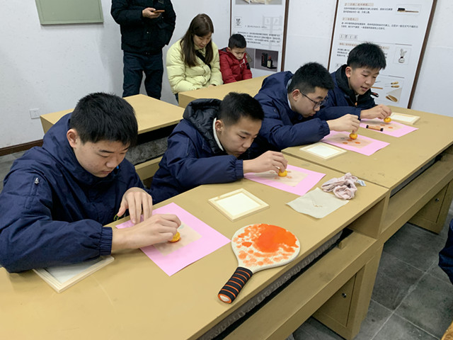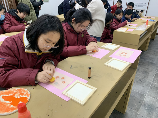 随后,在互动体验室内同学们在社教老师的指导下,手持工具,小心翼翼地在纸上拓印铜钱图案。随着一次次的按压,古老的钱币图案逐渐清晰,仿佛带着历史的温度跃然纸上,让同学们真切地触摸到历史的痕迹,沉浸式感受传统文化的独特魅力。