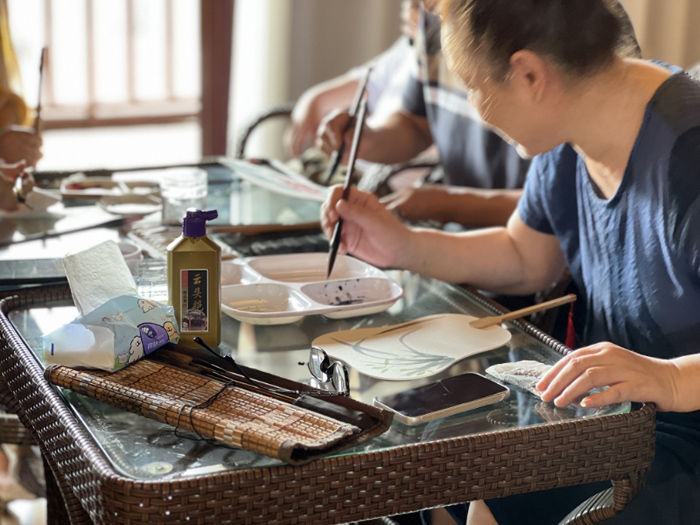 | 银发挥毫绘团扇 焦山诗会贺中秋 | |