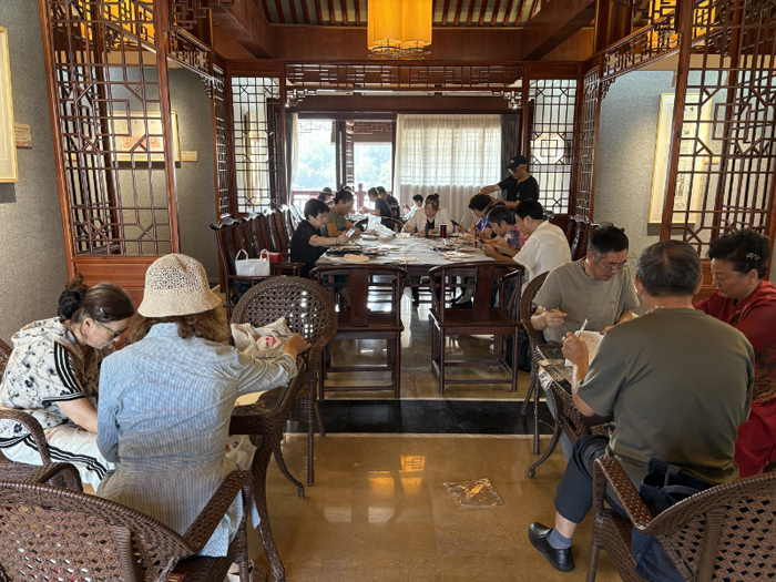 10 月 6 日上午,为丰富老年群体精神文化生活,传承中华优秀传统文化,镇江焦山碑刻博物馆联合市老年书画协会,特别邀请杨远辉、屠纪军、程娇龙三位文化指导师现场助力,举办 “扇舞中秋・银发诗友会” 活动,吸引二十多位老年书法爱好者热情参与。