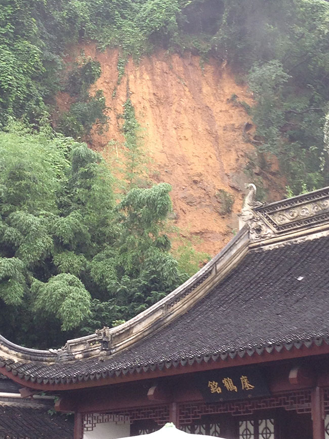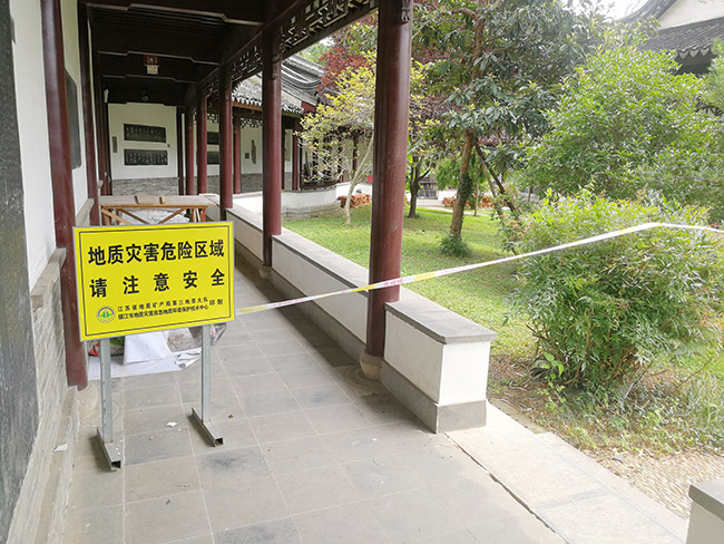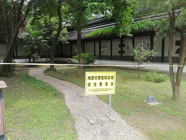 省、市国土规划部门到焦山碑林查看滑坡治理 2015年山体滑坡情况 7月7日上午,省、市国土规划部门在相关部门的陪同下,到焦山查看滑坡治理情况。其中一处滑坡处于我馆重要馆藏文物《瘗鹤铭》东侧。此处滑坡是在2015年梅雨季发生的。经市政府主管部门和相关单位协调,于2017年进行了滑坡治理工程。 目前,治理区域山体稳固。由于今年梅雨季降水量大,持续时间长。为了确保文物安全和游客安全,我馆已采取拉警戒线、树警戒牌、安排安保人员24小时加强巡查等措施。景区以及相关部门也多次来检查指导我馆安全工作,要求密切关注山体滑坡隐患。