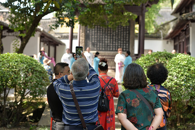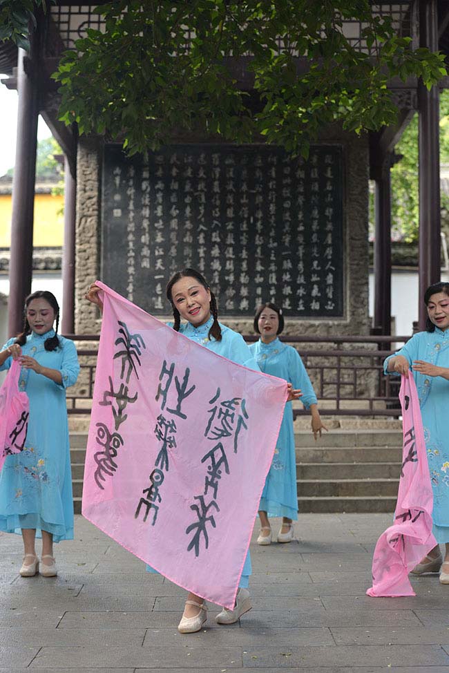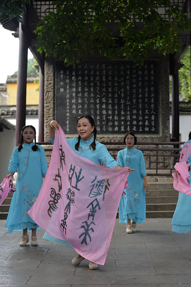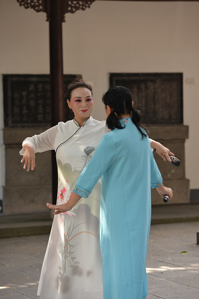 金山文化旅游节期间,为烘托2020年金山文化旅游节的氛围,吸引更多国内外游客了解焦山碑林,关注焦山碑林。镇江焦山碑刻博物馆于9月26、27日上午碑林御碑亭前,进行戏歌“春夏秋冬赏碑林”的表演。参加演出的是我市戏曲团队及部分志愿者。