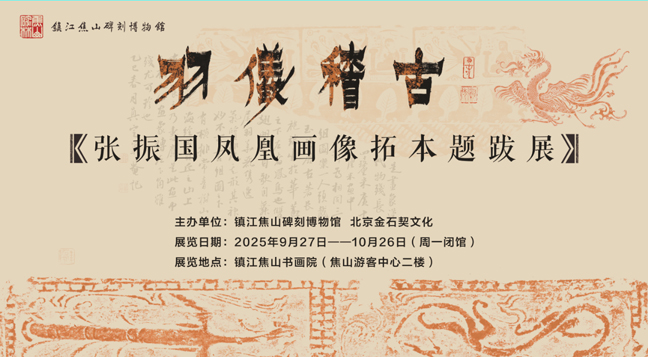 一、展览介绍 凤凰,作为中华民族最古老的吉祥图腾之一,其身影早已烙印在文明的源头。旧石器时代的岩画中,它是先民对自然的敬畏与想象;新石器时代的陶器纹饰里,它化作线条的律动,传递着农耕文明的生机。西周青铜器上的凤凰,带着礼器的庄重,羽翼间藏着宗法社会的秩序;春秋至战国,其形态渐趋灵动,似与诸子百家的思想一同飞扬。汉代是凤凰图像的鼎盛期,汉砖、汉画像石上的它,或与骏马相对成趣,或与汉阙同框,寄托对家国的庄严情怀。 此次“羽仪稽古——张振国凤凰画像拓片题跋展”,便在这片金石沃土上,铺展开一幅凤凰文化的长卷。四十余件作品中,既有战国至唐代的凤凰遗存拓片——那些来自古刻石、画像砖、画像石上的凤凰图腾,皆是古人留下的瑞鸟真容,经今人拓印得以重现肌理与神采;更有张振国先生的题跋点睛——或引典籍诗词,溯源凤凰的文化内涵;或自撰感悟,联结古今对美的共鸣。西泠印社副社长童衍方先生题写的展标,笔力沉雄,为这场古今对话再添墨香。 二、展览时间 2025年9月27日——2025年10月26日(每周一闭馆) 三、展览地点 焦山书画院(游客中心二楼) 四、主办单位 镇江焦山碑刻博物馆 北京金石契文化