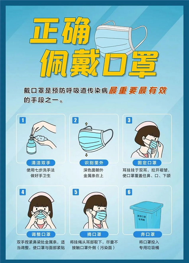 佩戴口罩,是预防新冠肺炎、流感等呼吸道传染病的有效方法,既保护自己,又保护他人。公众应根据风险等级和所处环境选择适宜防护级别的口罩。做到科学选戴口罩,既达到防护效果,又避免资源浪费。