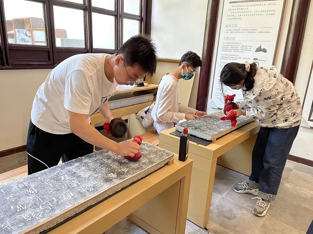 之后在镇江焦山碑刻博物馆的互动体验室内,同学们在碑林老师的指导下学习和体验了传统的碑刻拓印技法,在动手实践中更加立体地感受碑刻文化之美。 围读镇江,触摸碑林,感受碑刻艺术魅力,焦博将继续开展研学活动,陪您走进镇江地域传统文化。
