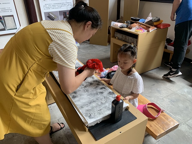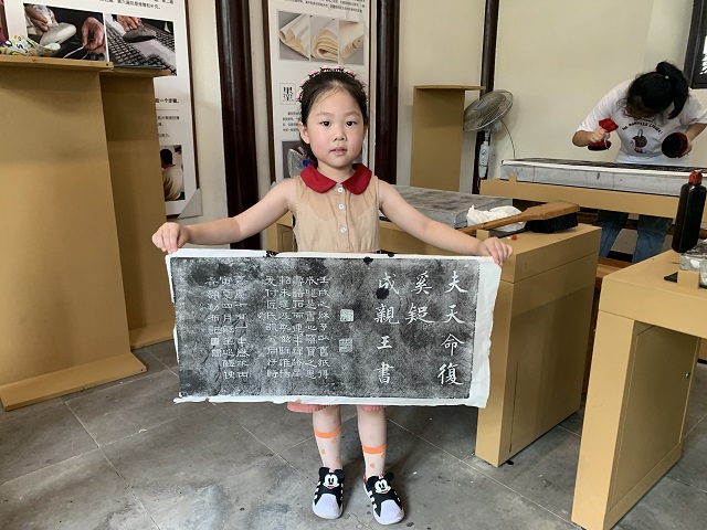 随后小记者们来到了互动室,进行拓片体验。小记者代表说:“在互动体验室,我们体验到了拓片技艺的神奇和传统文化的魅力。对中国传统文化也有了更多的了解,也学到了好多书本外的知识。”