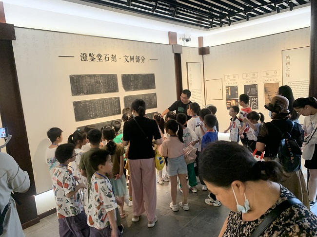 近日,来自扬中的小记者们到访焦山碑刻博物馆,跟随讲解老师先后参观了“深刻的记忆”镇江市东亚文化碑拓展和焦山碑林,认真聆听这些碑刻背后的故事,从初唐的《魏法师碑》到清代的《澄鉴堂石刻》、从乾隆下江南留下的《乾隆御碑》到纪念五四运动的《五月九日碑》……每一块碑石的来历和意义都令人震撼,深深的触动了这些小记者和家长们的内心。