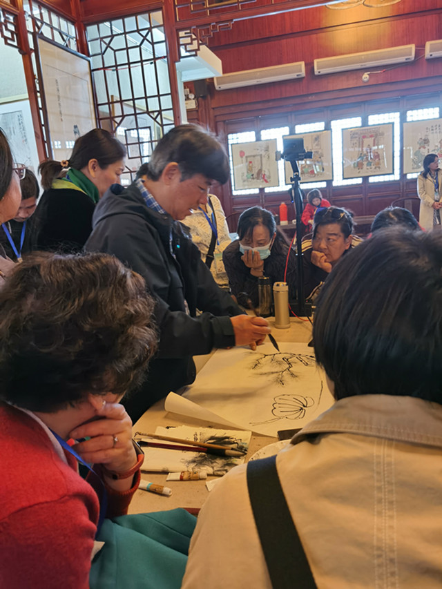 辛弃疾北固楼揽胜、王昌龄芙蓉楼和诗,米芾题写南山境、苏轼留玉金山寺,这些人们耳熟能详的文化典故在画师的笔下形象愈发充实,点墨之间,绘的是山灵水秀、诗人风雅,色彩之中,述的是国艺流芳、文化传承,别是一番艺坛佳话。跟随着朱老师的讲述,观众们仿佛沉浸于那个人文鼎盛的时代,透过国画对人文艺术与历史文化有了更深的理解。