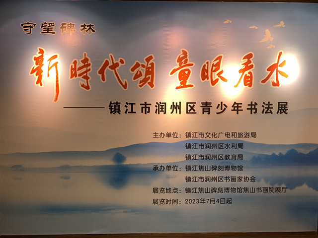 7月4日,由镇江市文化广电和旅游局、镇江市润州区水利局、镇江市润州区教育局主办,镇江焦山碑刻博物馆、镇江市润州区书法家协会承办,守望碑林“新时代颂 童眼看水”润州区青少年书法展在焦山书画院正式开展。本次展览展出的上百件青少年书法作品为守望碑林系列活动的获奖作品,通过青少年们鲜活灵动而不失艺术章法的书法创作,全面展示了镇江水风光、水生态、水景观、水文化的生动画卷。