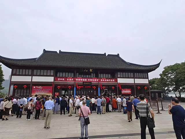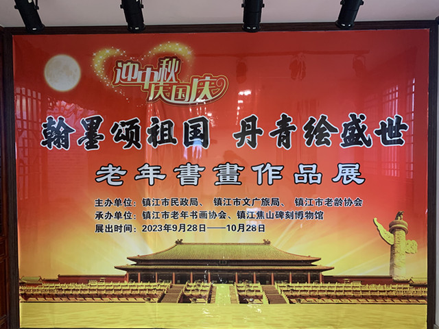 为热烈庆祝中华人民共和国成立74周年,深入贯党的二十大精神,讴歌新时代澎湃发展的现代化建设事业,赞美祖国和家乡的崭新面貌,9月28日上午,由镇江市文化广电和旅游局、镇江市民政局、镇江市老龄协会主办,镇江焦山碑刻博物馆与镇江市老年书画协会承办的“翰墨颂祖国 丹青绘盛世——老年书画作品展”在焦山书画院正式开幕。本次展览臻选了市老年书画协会会员书法、绘画作品共计200幅进行展出, 充分展现了广大离退休老同志勤奋学习、励志进取的精神。他们用细腻的笔触描绘祖国美丽富饶的河山和文明和谐的书香社会;展现家乡的沧桑巨变和加速跑的奋斗场景;以臻善臻美的书画作品,弘扬社会主义核心价值观和艺术家始终“为了人民”的价值取向。