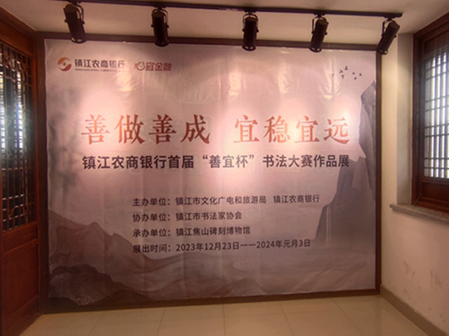 12月23日 ,“善宜杯”书法大赛作品展在焦山书画院正式开展。本次展览由镇江市文化广电和旅游局、镇江农商银行主办,镇江焦山碑刻博物馆承办,镇江市书法家协会协办。