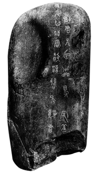 我国古代的石刻文字始于何时,尚不明确。远古刻石文字中最著名的是先秦时期的《石鼓文》,所用文字为籀文,由西周金文发展而来,但自然、朴质,和秦始皇统一后的秦小篆已十分接近;1974年发现于河北平山县的《公乘得守丘刻石》,说明了石刻文字从战国前期到秦统一时期的发展变化。